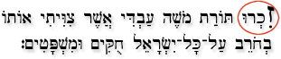"Remember the Torah of Moses my servant that I commanded him at Horeb, the statutes (chukim) and judgments (mishpatim) for all Israel."