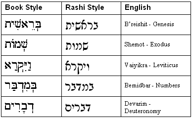 These are the names of the five books of the Torah of Moses...