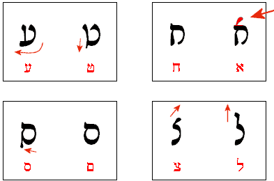The following table lists the Rashi script (book and script medial forms are listed here for reference):